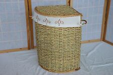 CESTO Portabiancheria vimini bianco mezzaluna foderato bagno contenitore panni